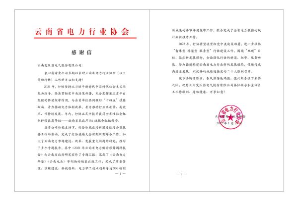 表扬信--云南电网有限责任公司关于表彰独龙江乡35千伏联网工程参建单位的通报
